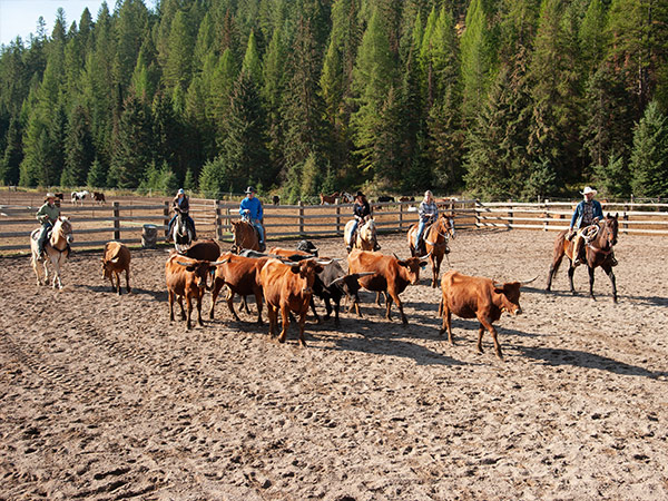 - Morning: A scenic trail ride through pastures, forests, and creek crossings, while learning from wranglers how to move and handle cattle.