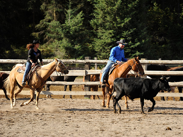 Learn the fundamentals of moving cattle from horseback in one of our outdoor arenas, then work in small teams to herd cattle into a catch pen. Each rider participates at a skill level that suits them, with a strong emphasis on teamwork, horsemanship and safety.